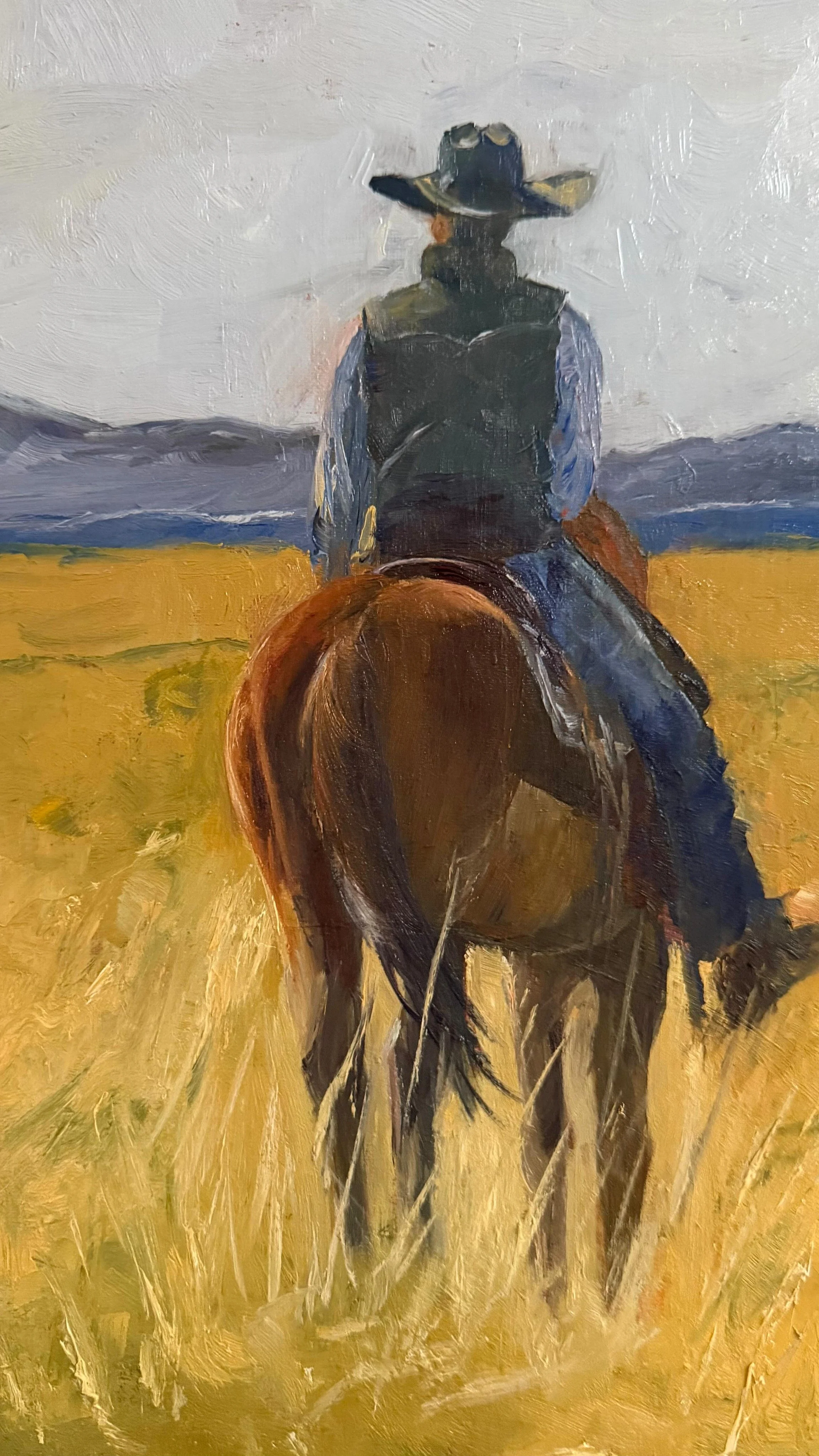 Daily Paintings › Cowboy Hat and Jacket Cowboy Hat and Jacket $275.00 This painting was part of a 30 day painting from life challenge. It is a hat and chore coat hanging in my studio. This painting was part of a 30 day painting from life challenge. It is a hat and chore coat hanging in my studio. Add To Cart Added!